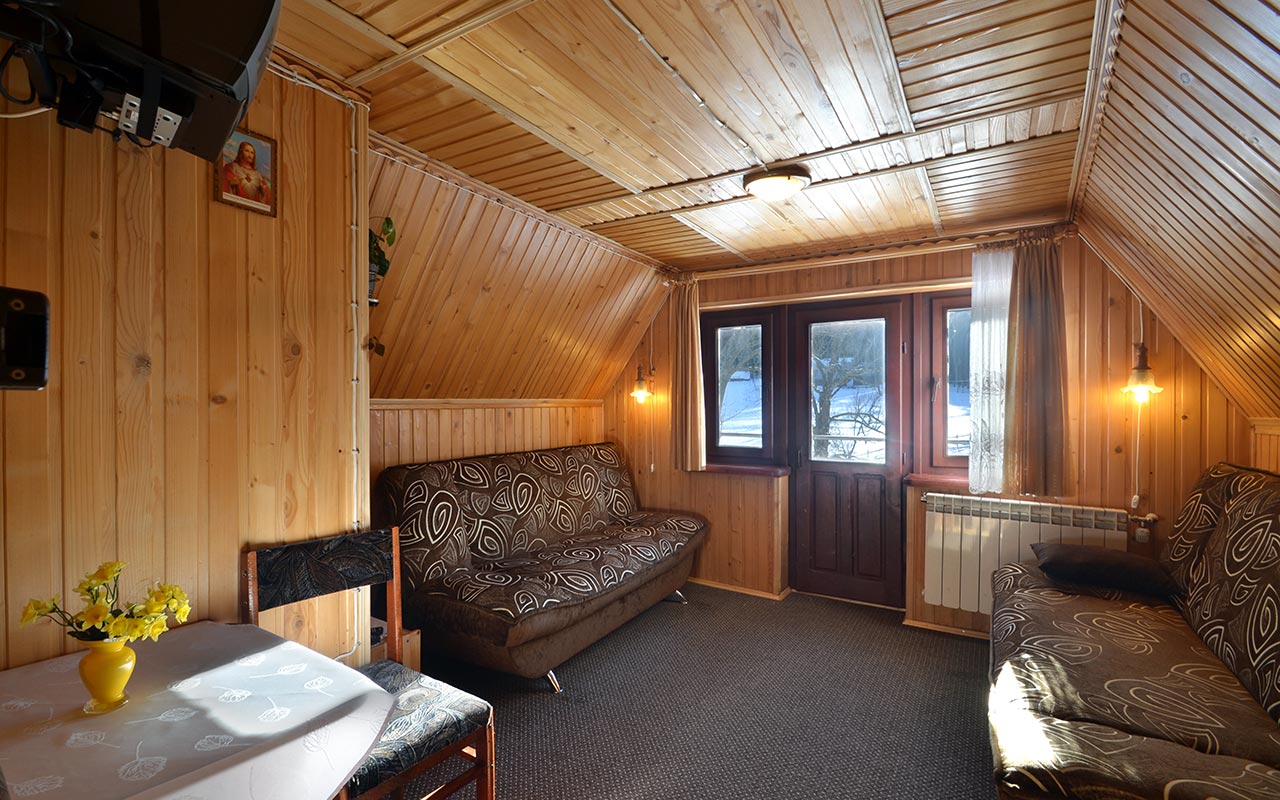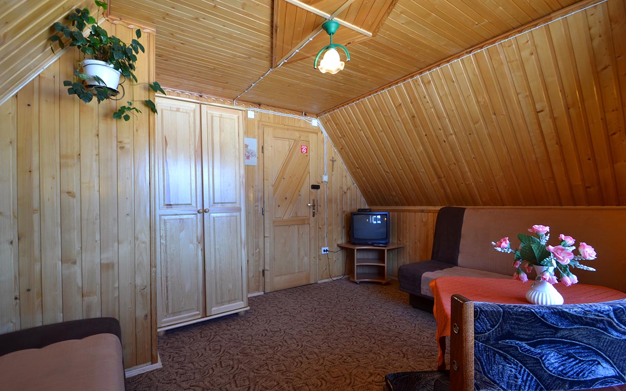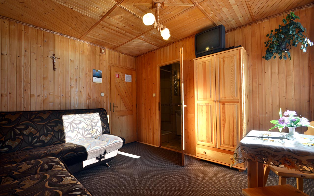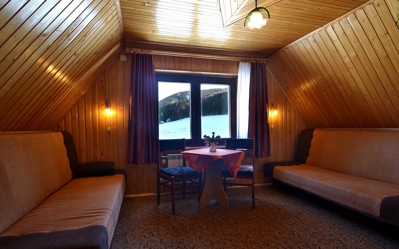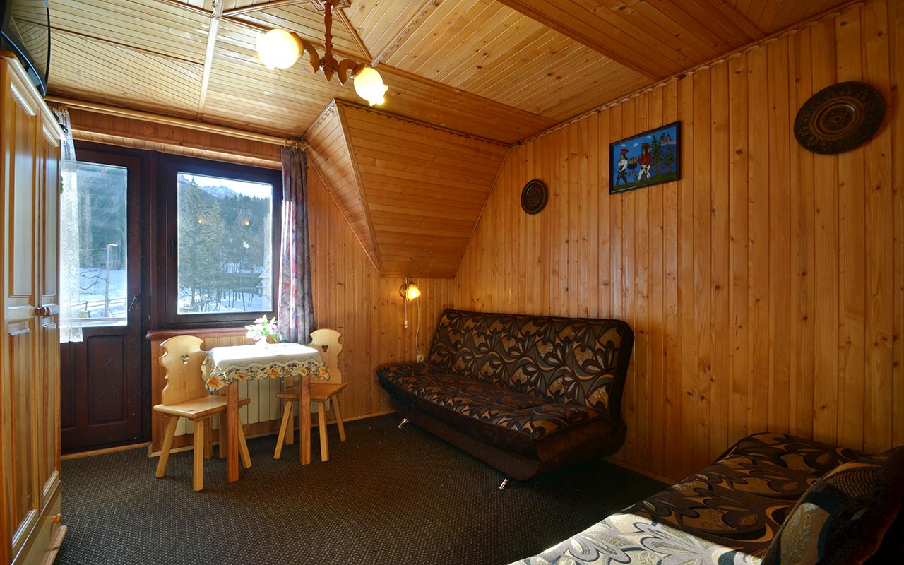 Intímna izba s dreveným obkladom v regionálnom štýle, určená pre 3 + 1 osoby,