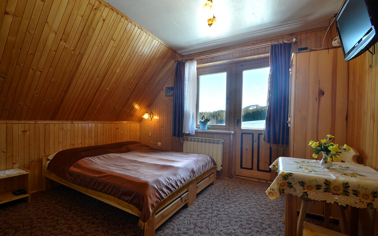 Má vlastnú kúpeľňu, balkón s nádherným výhľadom na hory, určite vám spríjemní pobyt. Postarali sme sa o to, aby ste sa cítili pohodlne. Izba má jednu manželskú posteľ a manželskú rozkladaciu posteľ